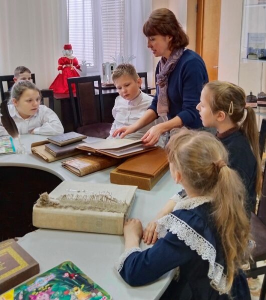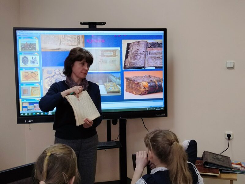 Особый восторг у школьников вызвала практическая часть: дети смогли детально рассмотреть уникальные издания из фонда библиотеки, наглядно увидев результат многовековой эволюции книги.