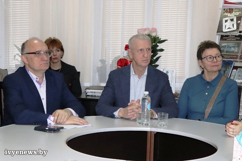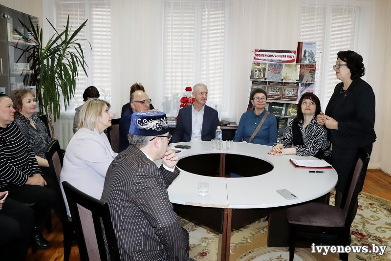 21 ноября в Ивьевской районной библиотеке состоялся круглый стол «Времён связующая нить», посвящённый 80-летию Победы советского народа в Великой Отечественной войне. Участниками встречи стали: представители Региональной общественной организации «Национально-культурная автономия «Белорусы Москвы» В.Ф. Бычко (уроженец Ивьевщины) и В.Н. Кулик, председатель Ивьевского районного Совета депутатов В.С. Филон, имам Ивьевской мечети А.С. Радецкий, заведующий сектором культуры Ивьевского райисполкома С.В. Кишкель, директор ГУК «Ивьевская районная библиотека» С.А. Мирончик, директор УК «Ивьевский музей национальных культур» А.В. Викторова, сотрудники библиотеки.