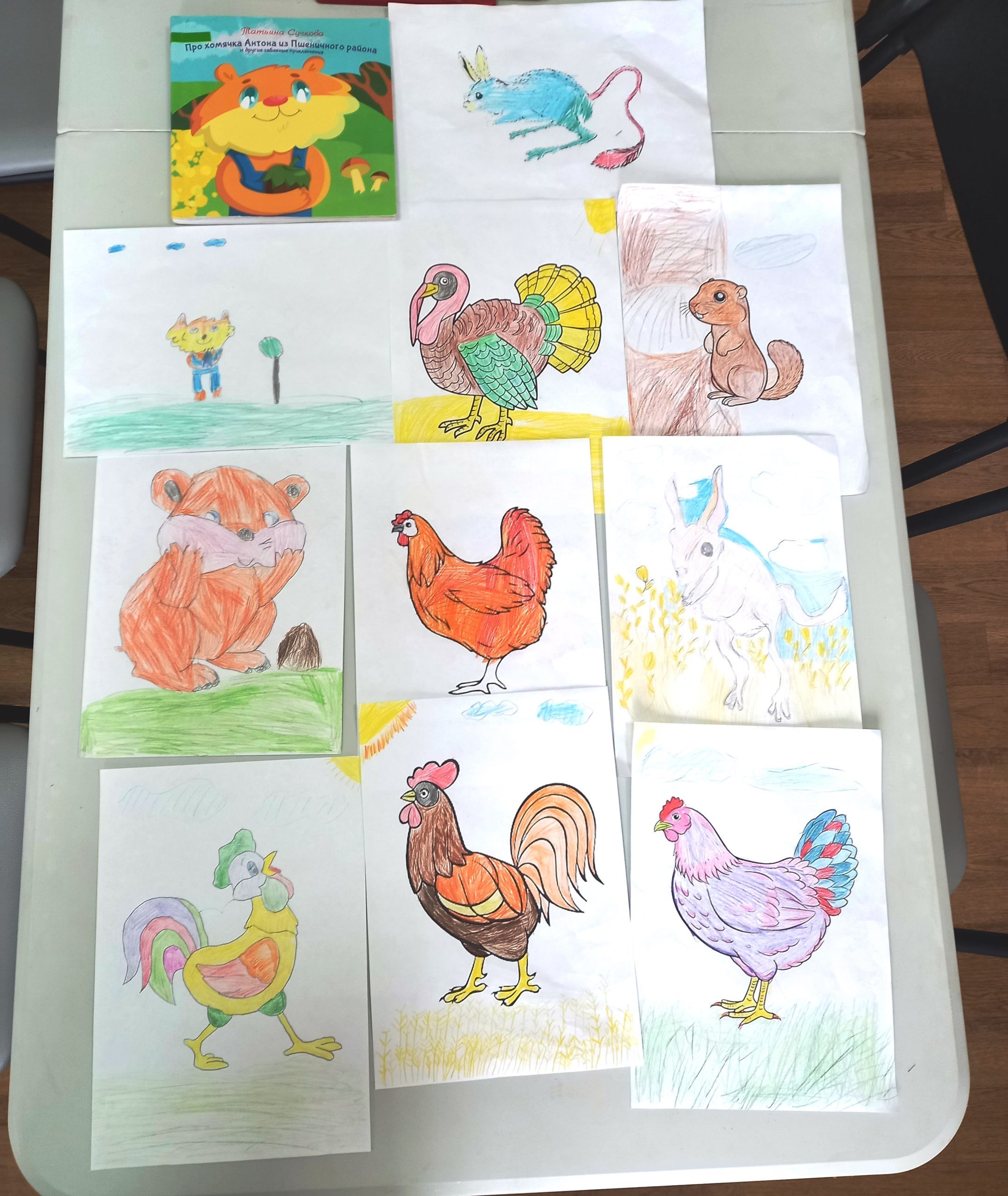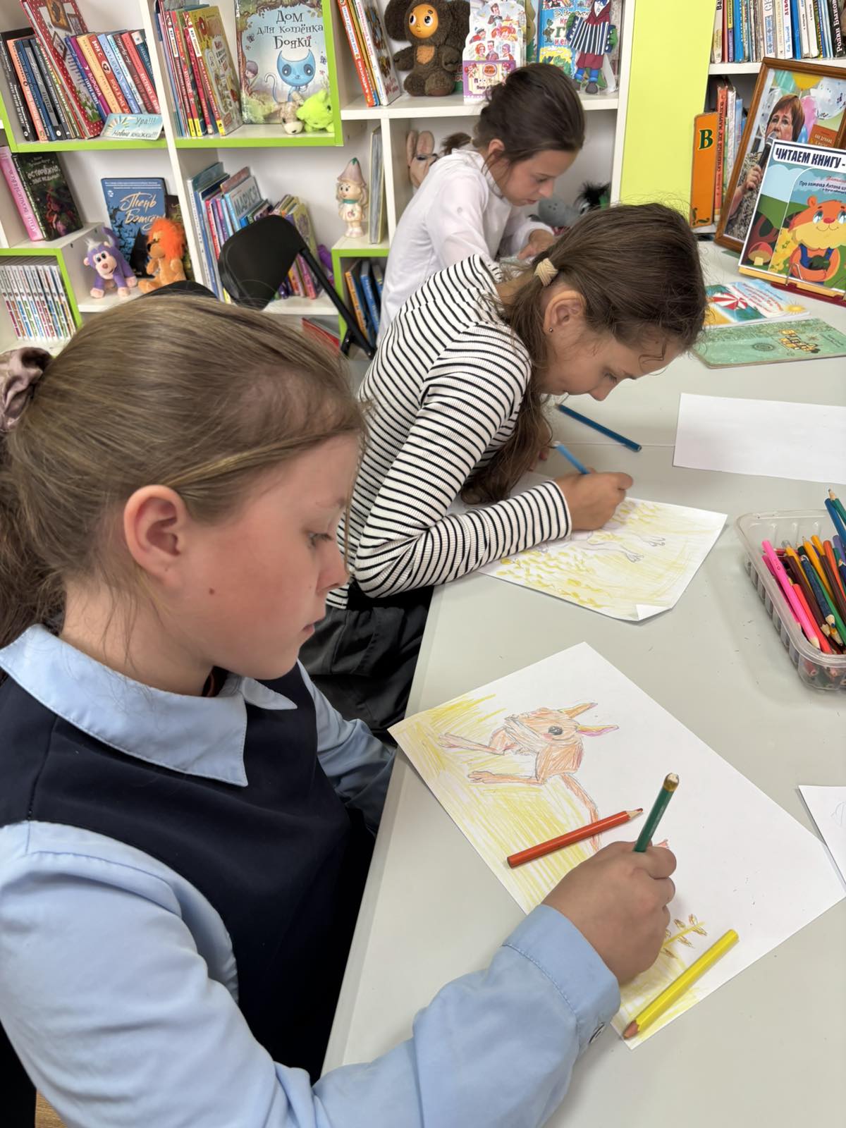Ребята не только познакомились с историей хомячка Антона, но и попробовали себя в роли иллюстраторов: нарисовали понравившихся сказочных героев. Четвероклассники очень старались, поэтому рисунки получились яркими и красочными.