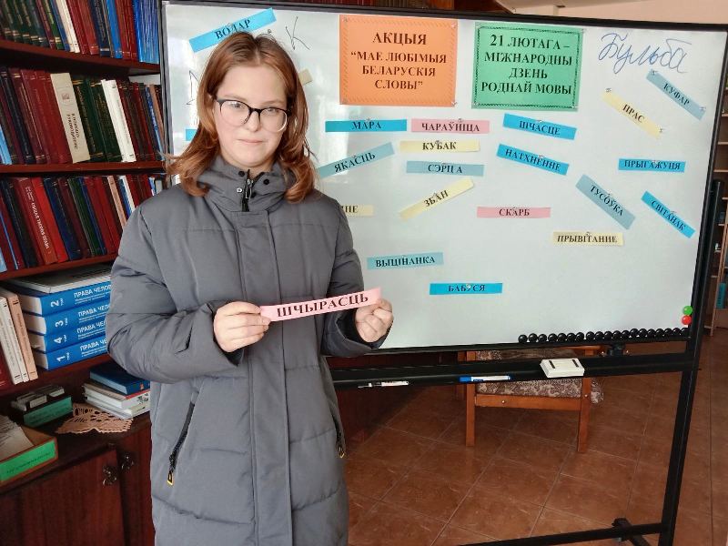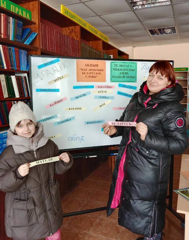 Да Міжнароднага дня роднай мовы ў бібліятэцы-філіяле г.п.Юрацішкі была аформлена кніжная выстава “Родная мова” і прайшла акцыя “Мае любімыя беларускія словы”. Бібліятэчная магнітная дошка стала інтэрактыўнай пляцоўкай для адлюстравання пачуццяў чытачоў да матчынай мовы: удзельнікі акцыі размяшчалі на ёй свае самыя дарагія і мілагучныя словы. Гэты “жывы” слоўнік, створаны рукамі чытачоў, яшчэ раз даказаў: беларускае слова застаецца для нас самым цёплым і родным.