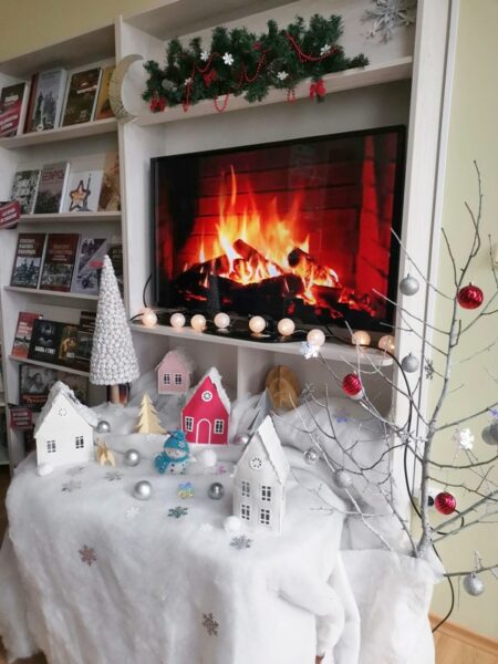Отдел обслуживания и информации радушно приглашает гостей в свой сказочный рождественский городок, где можно «погреться» у уютного камина и окунуться в мир «Атмосферных зимних книг», представленных на тематической выставке.