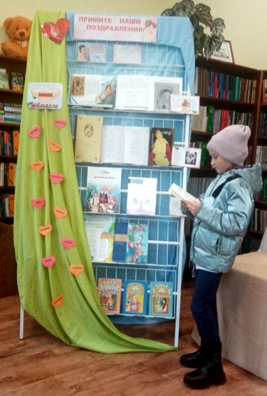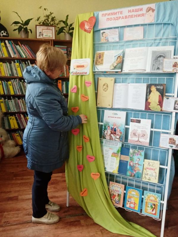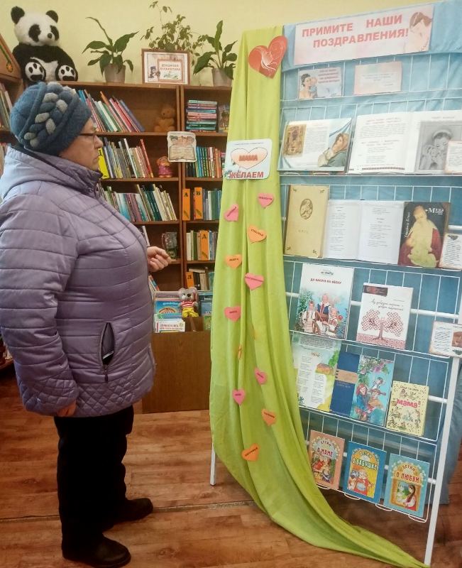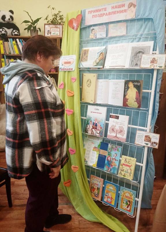 Библиотекарь подготовила для посетителей тематическую выставку литературы, на которой были представлены сведения об истории праздника и книги со стихами и прозой, посвященные мамам, бабушкам, семейным отношениям.