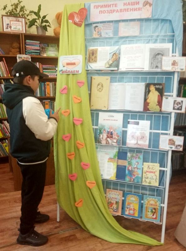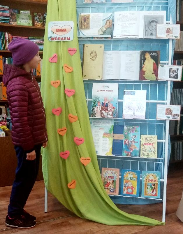 У выставки с читателями проводились беседы о роли матери в жизни каждого человека. Посетители знакомились с материалами выставки и оставляли на ней бумажные сердечки с тёплыми пожеланиями любимым мамам.