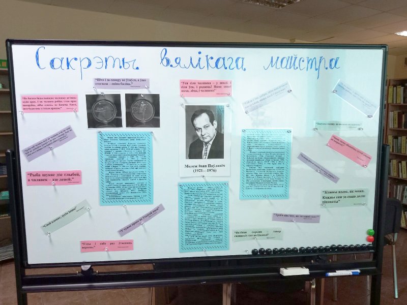 Падчас мерапрыемства пастаянныя чытачы і наведвальнікі аддзялення ТЦСАН Іўеўскага раёна даведаліся шмат цікавага пра жыццё і творчасць народнага пісьменніка Беларусі Івана Паўлавіча Мележа. Прысутныя раскрылі “Сакрэты вялікага майстра” з дапамогай інтэрактыўнай магнітнай дошкі і праверылі сваё веданне самых значных твораў пісьменніка.
