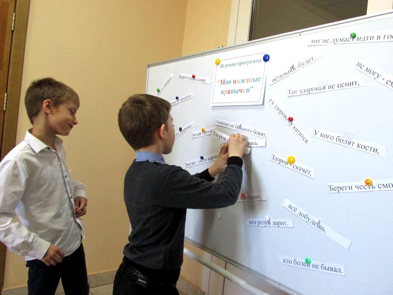 Школьники приняли активное участие в играх: «Составь пословицы о здоровье», «Полезно — вредно», «Собери слово», «Закончи предложение».