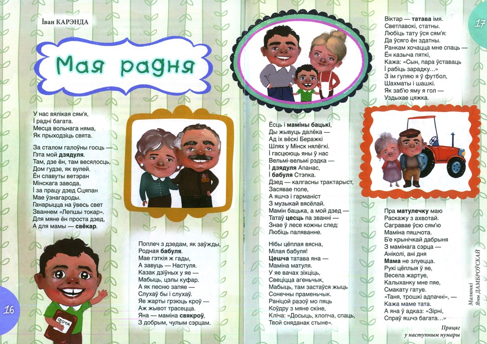 Паважаныя чытачы! У новым нумары часопіса “Вясёлка” (№10 за 2025 год) надрукавана частка верша “Мая радня” нашага вядомага земляка Івана Карэнды. Працяг будзе ў наступным нумары.